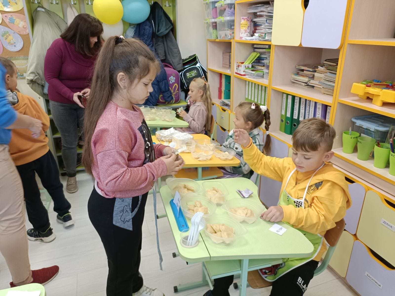 Учні 1 класу нашої гімназії цього тижня вивчали тему,,Ми- підприємливі". У словниковий запас дітей увійшли слова ,, добродій", ,,доброчинність",,,підприємливий". Виникла спільна їдея- організувати ,, День вареника". Разом складали вірші. З батьками ліпили вареники. Ярмарок вийшов на славу!